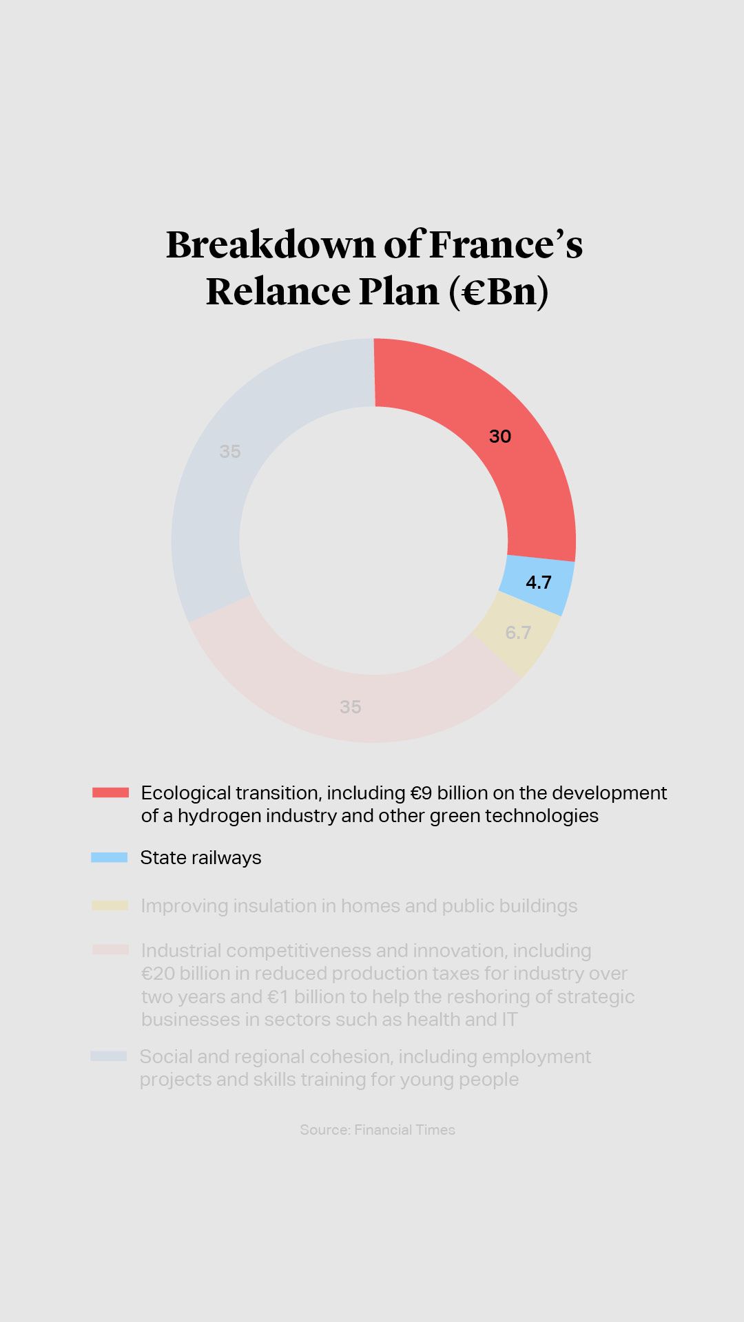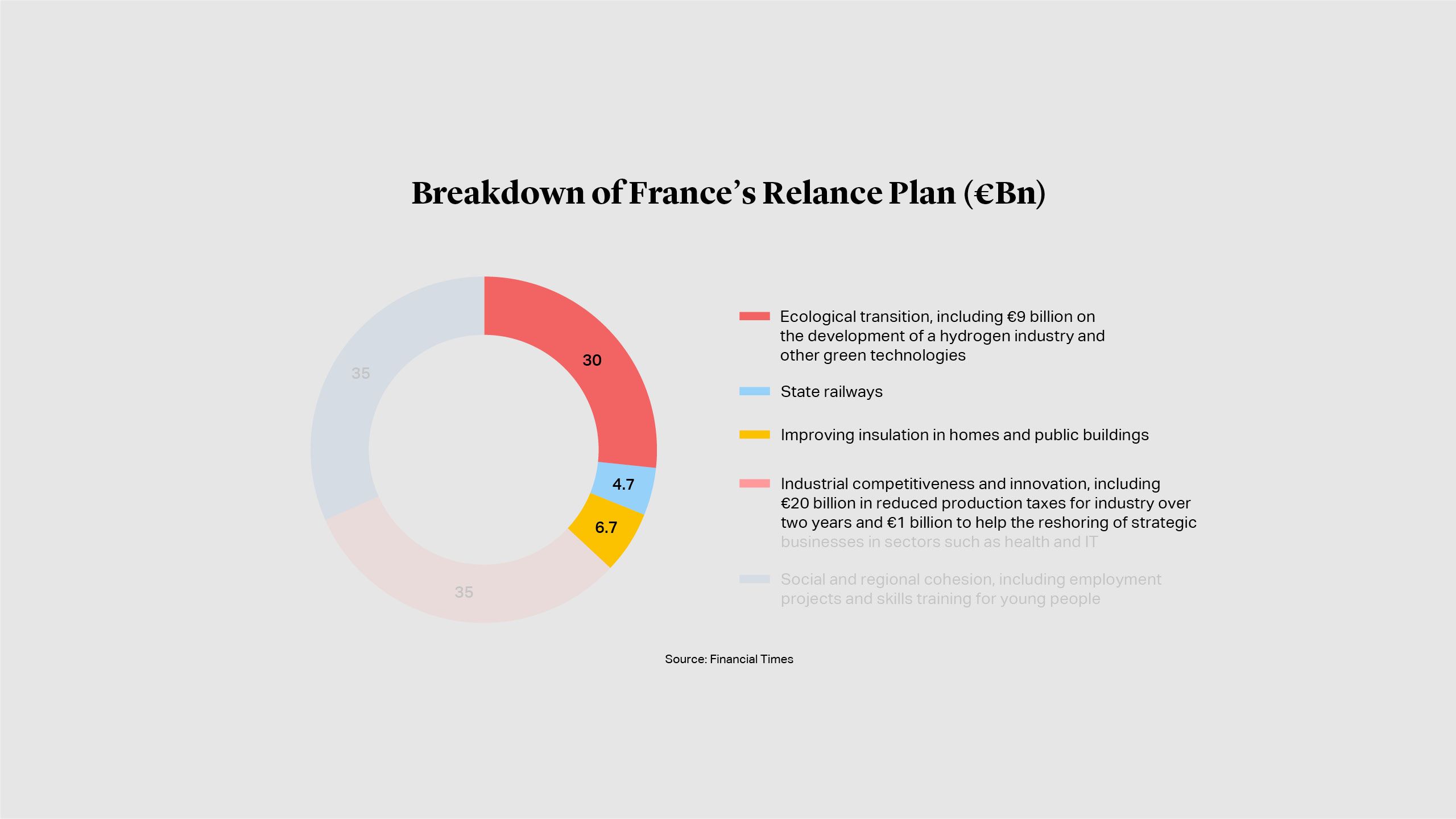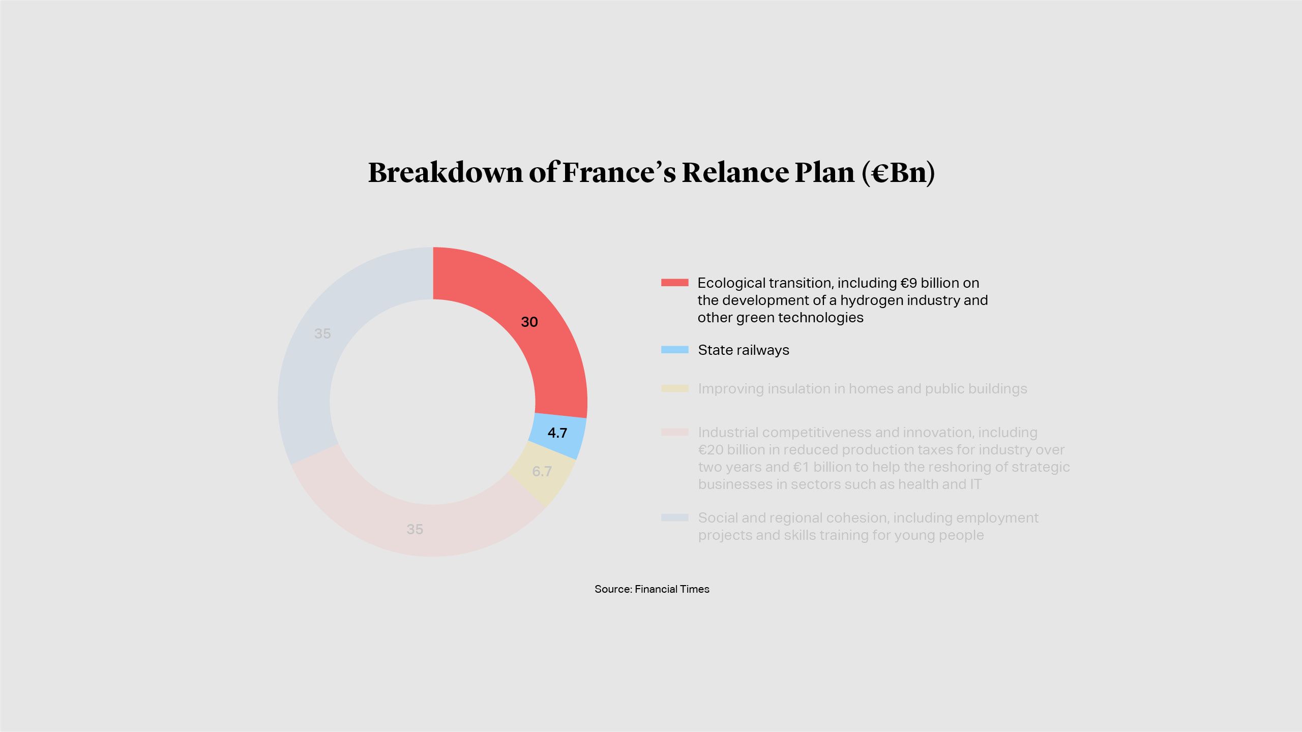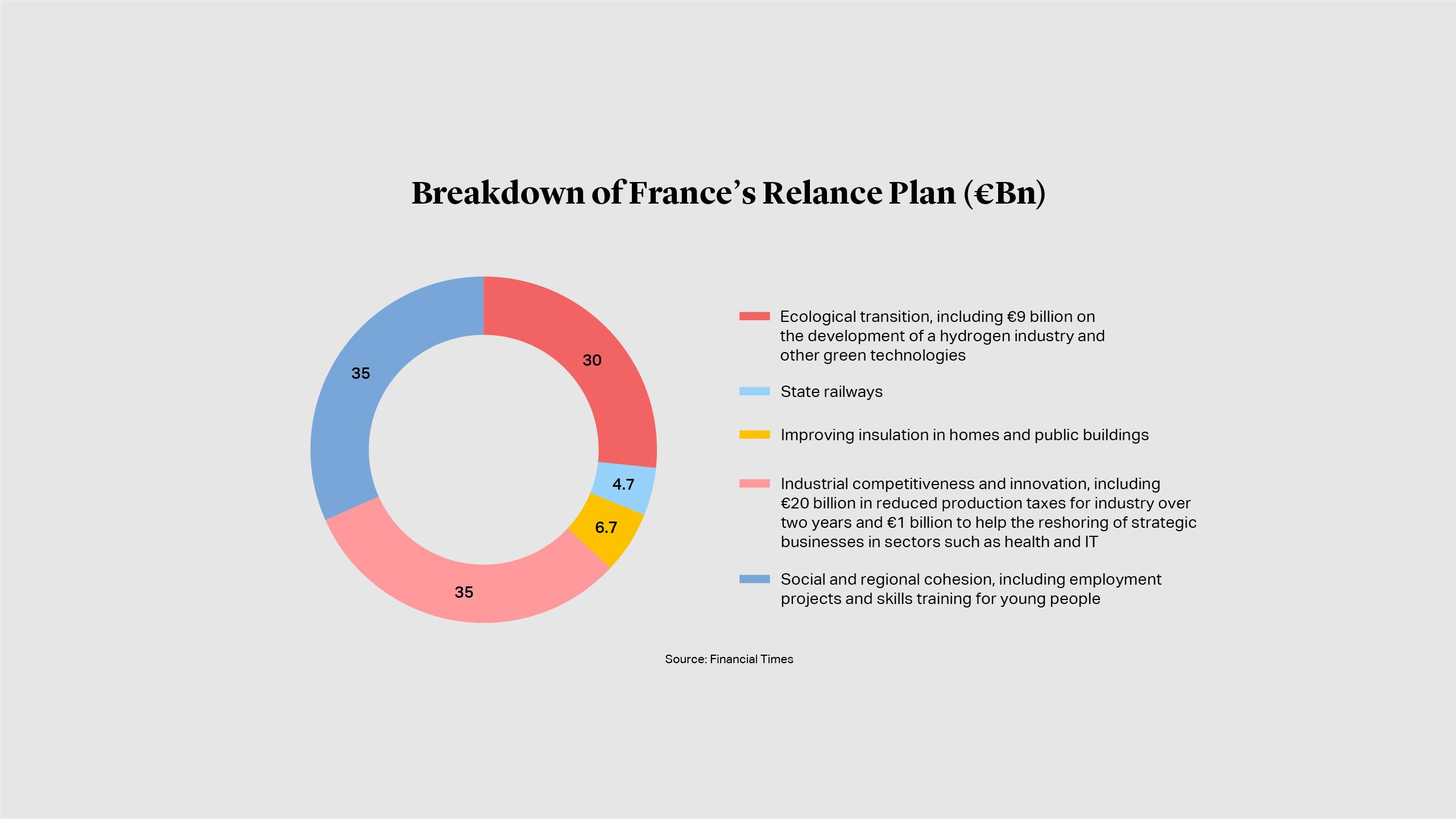 Government borrowing ballooned throughout 2020 putting many treasuries even deeper in the red. The UK’s public sector net debt had increased to almost £2.1 trillion{{5}}{{{UK government deficit soars to record high on pandemic borrowing</br>Source: Financial Times}}}at the end of November and represented 99.5% of GDP{{6}}{{{OBR forecasts 'lasting' economic damage from Covid-19: Spending Review</br>Source: Financial Reporter}}}, according to data from the Office for National Statistics. With finances strained, governments are seeking to stimulate private sector investment into infrastructure. In his November review, UK Chancellor Rishi Sunak outlined plans for an infrastructure bank which would invest alongside private investors via loans and guarantees{{7}}{{{UK public sector borrowing hits record high</br>Source: Financial Times </br> Public sector finances, UK: November 2020</br> Source: ONS}}}. France is similarly focusing on green infrastructure in its €100 billion “France Relance” plan, with almost a third to be spent on ecological transition, including green hydrogen{{8}}{{{France launches €100bn coronavirus recovery plan</br>Source: Financial Times}}}.