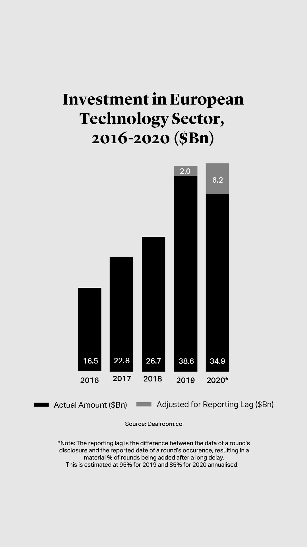 European investment in tech disruptors was on track to hit a record $41 billion in 2020, according to Dealroom data for Atomico’s State of European Tech report{{4}}{{{The state of European tech 2020: 20 things you should know</br>Source: Sifted}}}. The driver, in part, was start-ups and scale-ups raising large funding rounds from private equity and venture capital – including Swedish FinTech Klarna, which raised $650 million, and co-working kitchen space provider Karma Kitchen, which raised $317 million. We expect continued activity, with a clear focus on some key areas.