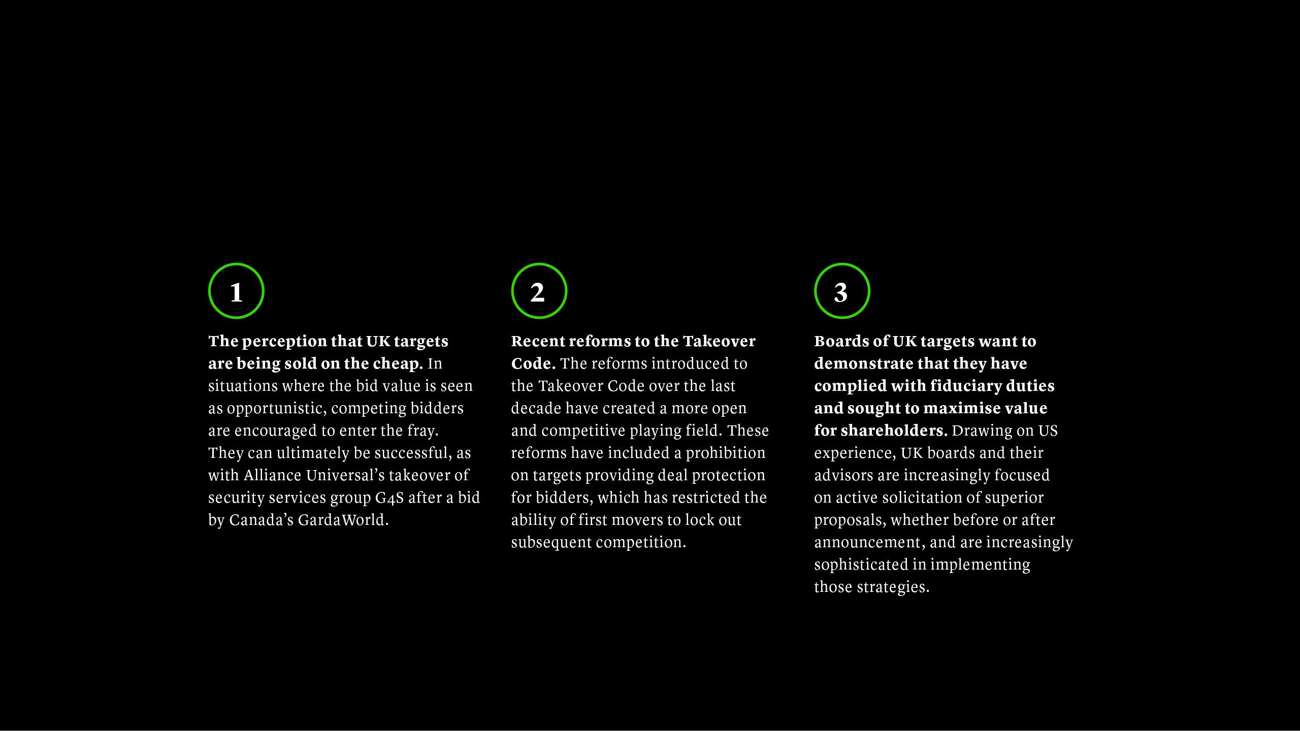 We expect take-private activity in the UK to remain robust as sponsors look to deploy significant reserves of capital. However, as activity has risen so has complexity, presenting challenges for potential buyers to overcome. Here we outline four major features of the current environment.