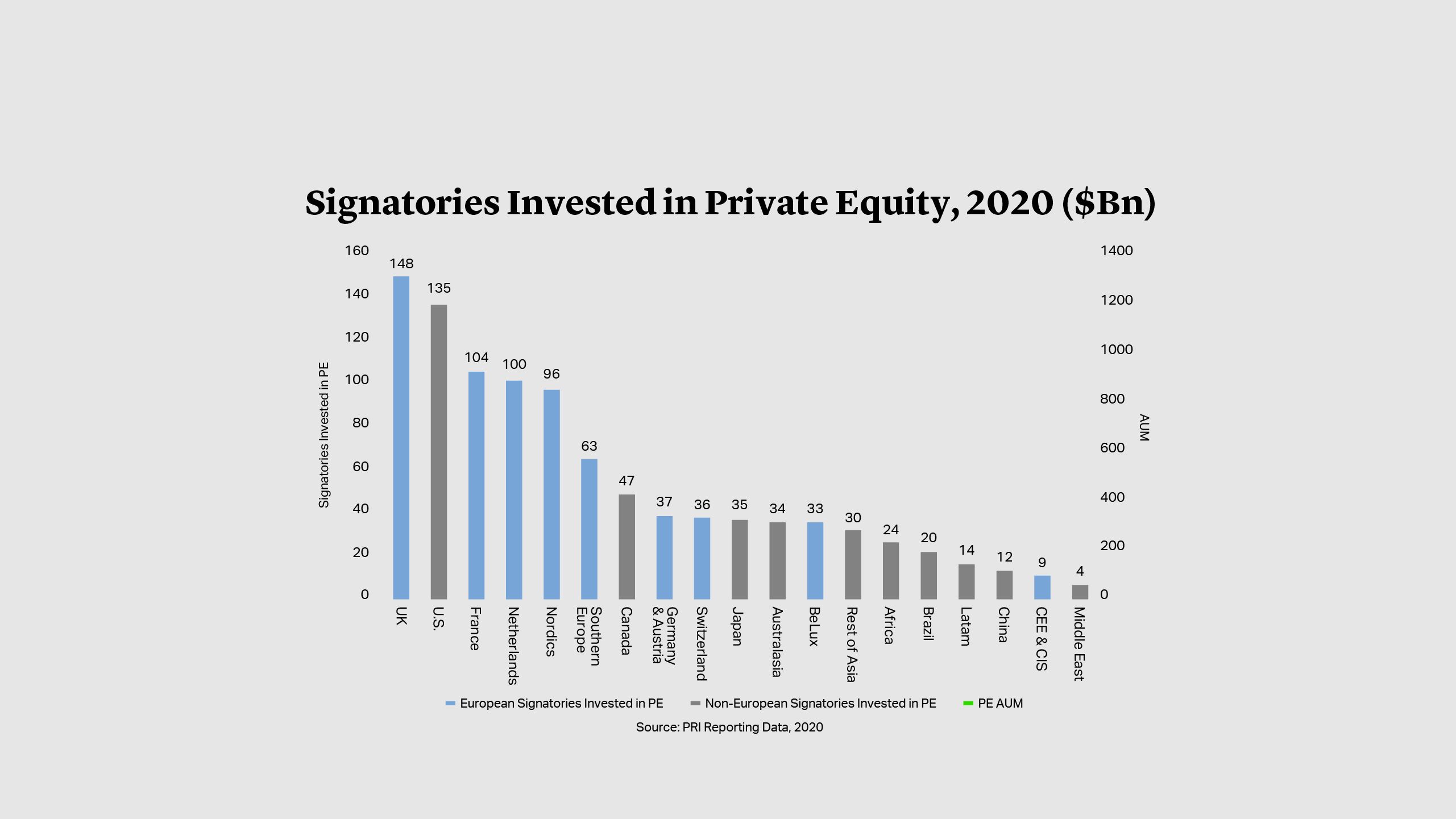 Private equity’s commitment to responsible investment went through a step change in 2021. According to the Principles for Responsible Investment (PRI), the number of investment manager signatories with at least 10% of their assets in private equity grew by about 250 to 975 – approximately two-thirds of the group’s private equity signatories are based in Europe3.
