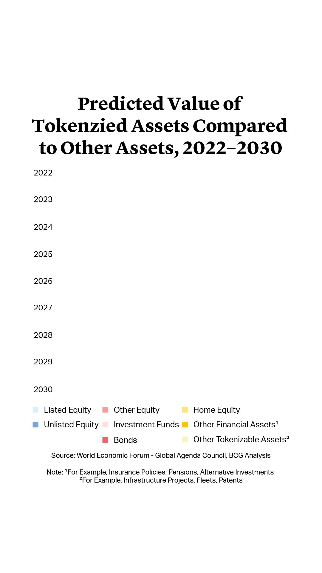 Indeed, the tokenization of global illiquid assets is predicted to represent a $16tn opportunity by 2030, according to a report produced by BCG and Asian private market exchange ADDX – and that is a conservative estimate4. In the best-case scenario, the report sees that figure rising to $68tn.