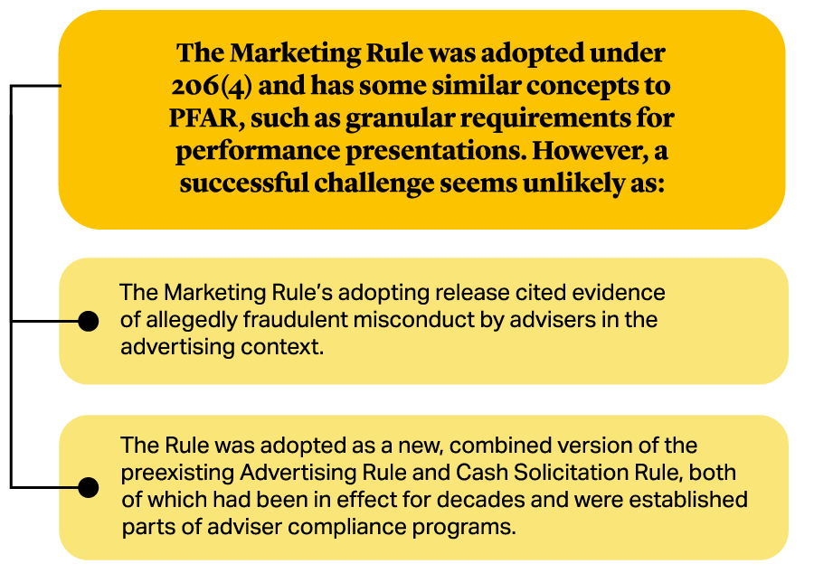 One of the industry associations’ central arguments in the litigation was that neither of these statutes in fact gave the SEC the requisite authority to adopt PFAR.
